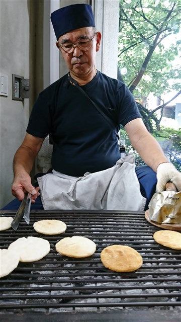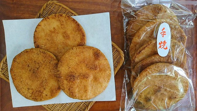 비장탄으로 한 장 한 장 정중하게 구워 올리는 「데야키」는, 3대째 가쓰라 미키스케 사부가 「금고에 숨겼다」라고 하는 일화가 있어, 잘 구운 「오코게」와 함께 간판 상품입니다.