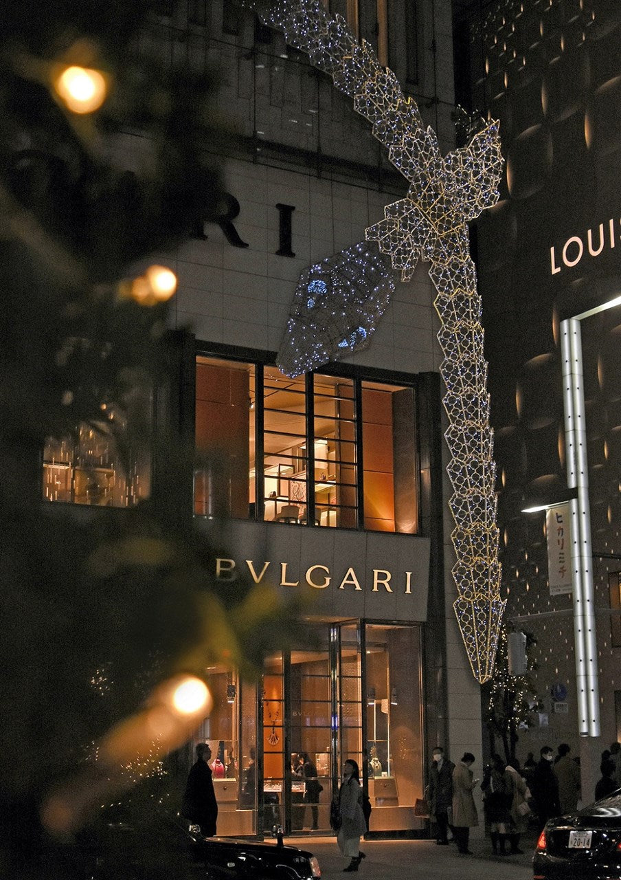긴자에서 외국 미디어가 포즈를 취하고 있는 장면에 셔터를 껐습니다.