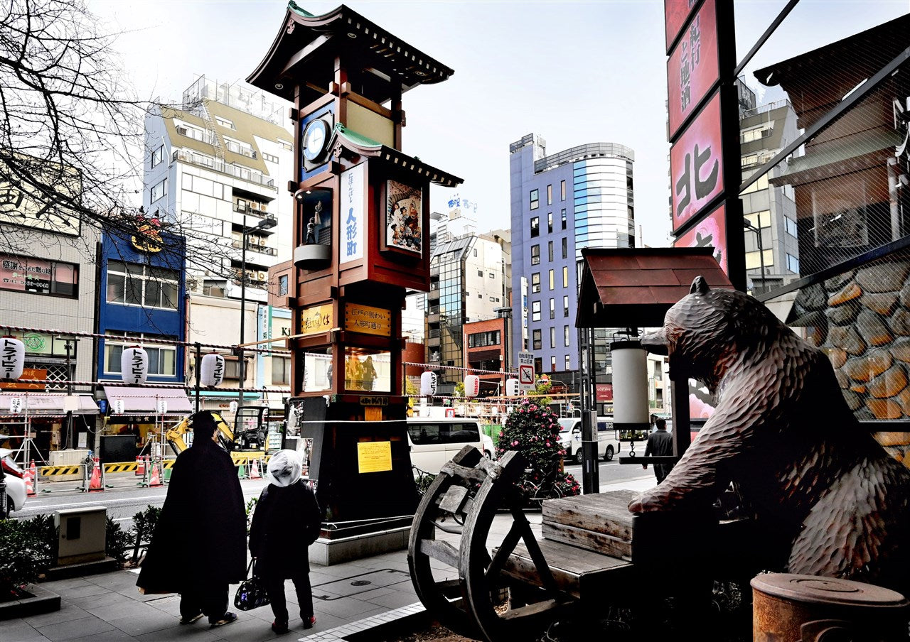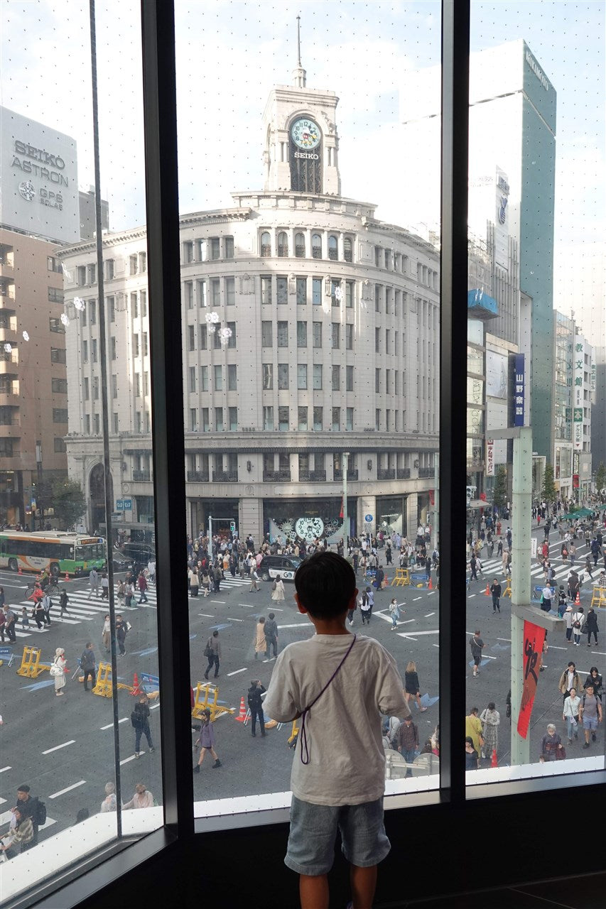- 세이코 하우스 긴자와 보행자 천국을 바라본다