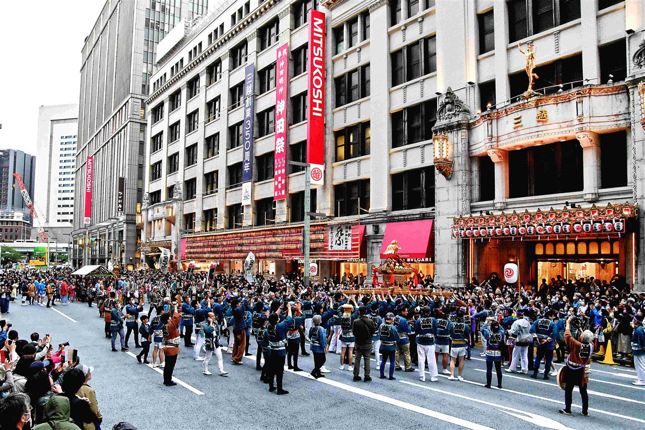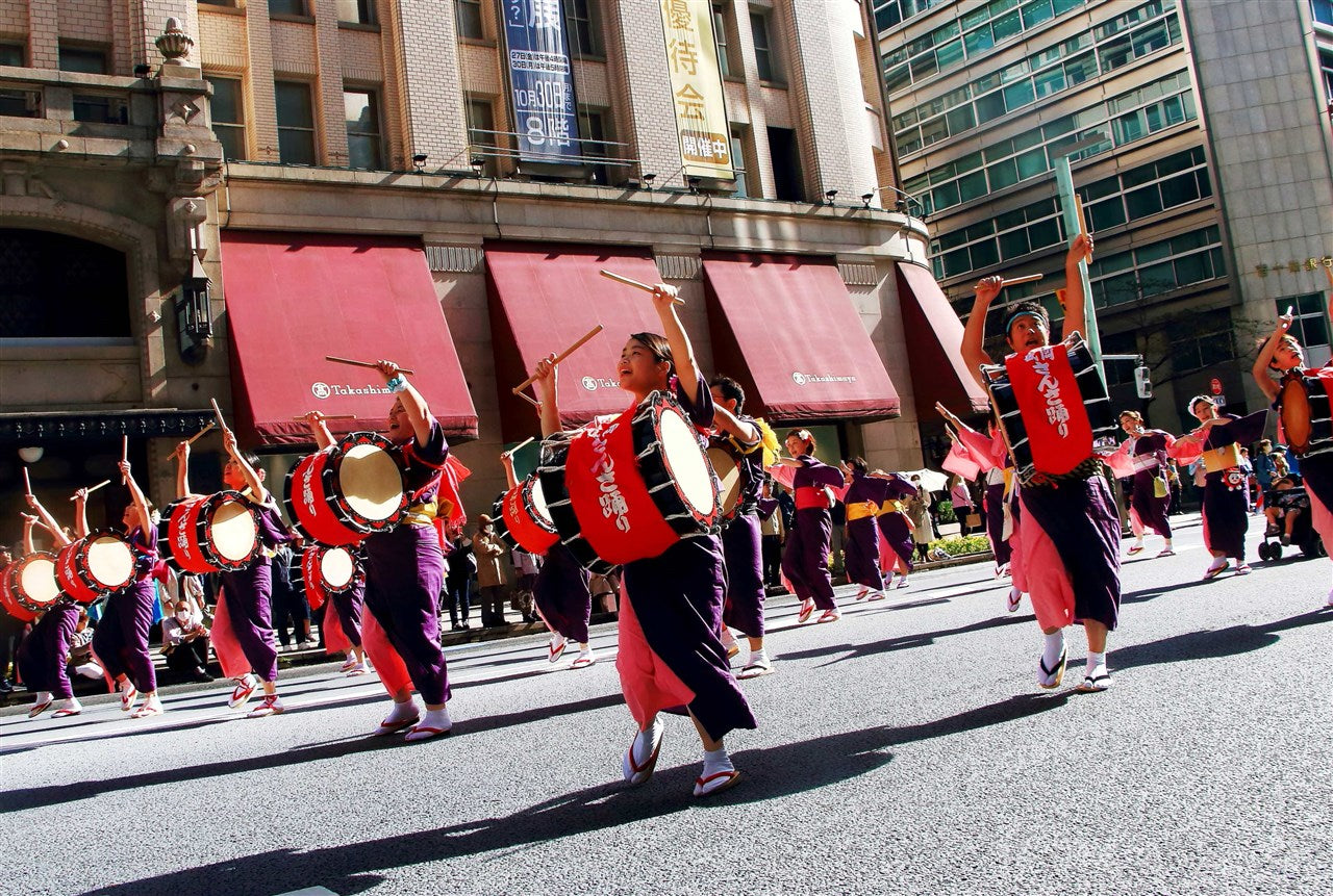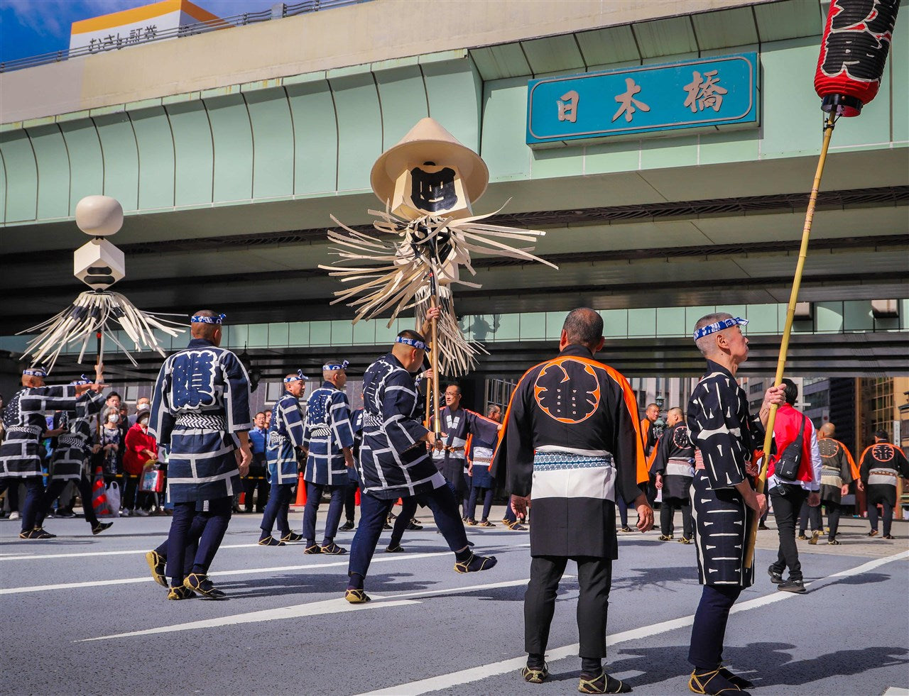 「니혼바시・쿄바시 축제」의 「오에도 활췌 퍼레이드」에서의 한 컷입니다.에도 소방 기념회의 분들이, 나무 먹기나 전진 등의 에도 화재의 기술을 피로해 주셨습니다.에도 시대의 문화와 전통을 느낄 수 있었습니다.