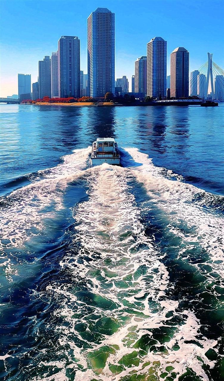 황혼 때의 쓰키시마 니시나카도리 상가를, 사실적인 원근감으로 잘라낸 뛰어난 작품입니다.밤하늘에 떠 있는 고층 빌딩과 아케이드의 불빛의 대비가, 상가의 마을의 따뜻함을 인상하고 있습니다.양쪽 옆의 「참」이라는 글자가 효과적인 엑센트가 되고 있습니다.
