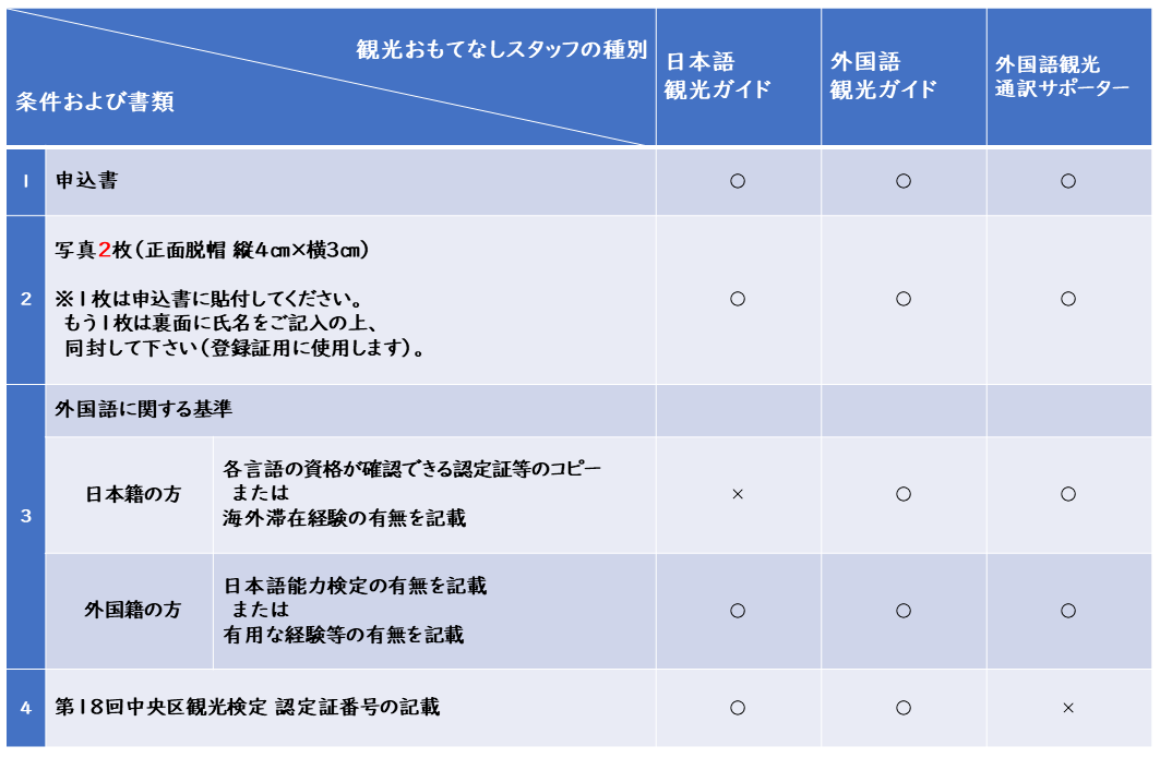 ※모집 종별(1) 및 (2)를 희망하는 경우는, 「제18회 주오구 관광 검정(실시일:2026년 1월 31일(토))」에의 합격이 필요합니다.
